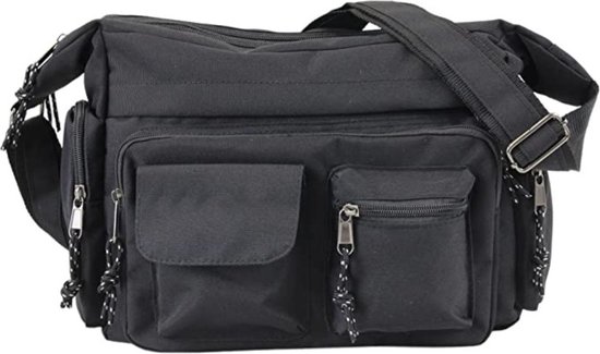 Fana Bags Dames Schoudertas Zwart Veel Vakken Nylon Schoudertas Dames Handtas | bol
