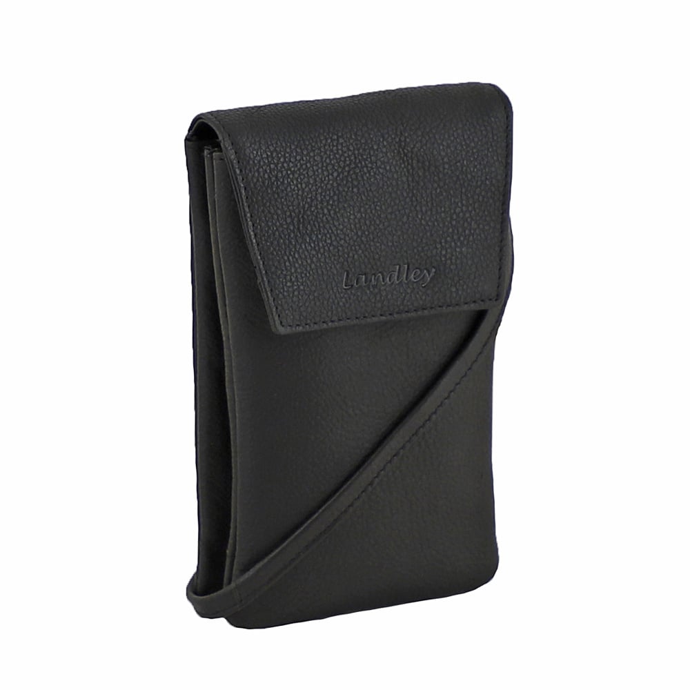 Landley Leren Dames Telefoontasje Schoudertasje Leer Zwart Houtkamp Lederwaren