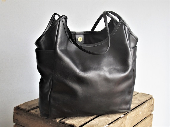 Zwarte leren schoudertas: damestas met zakken Etsy Nederland