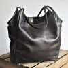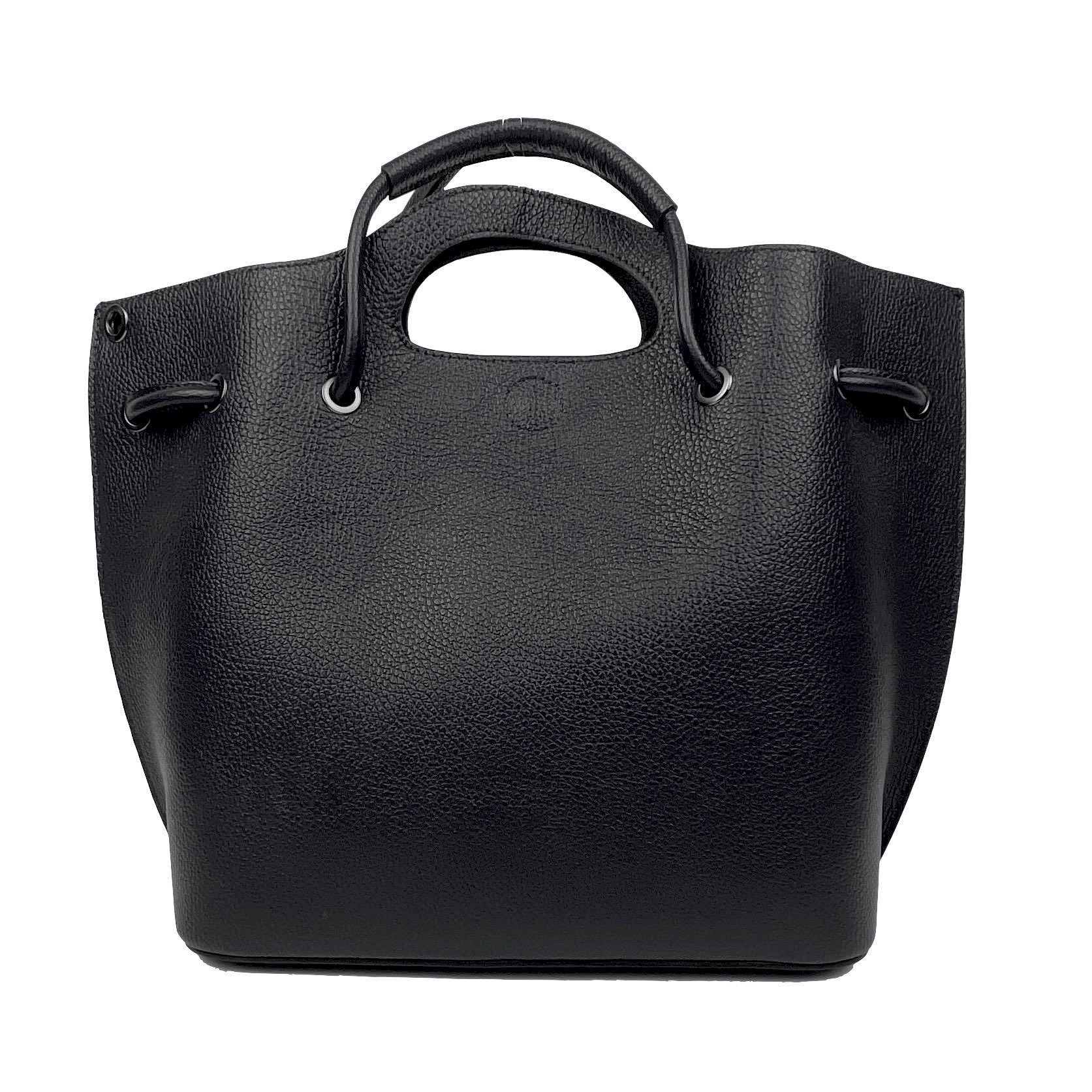 Zwarte leren handtas ‘bag in bag’ met dubbel handvat